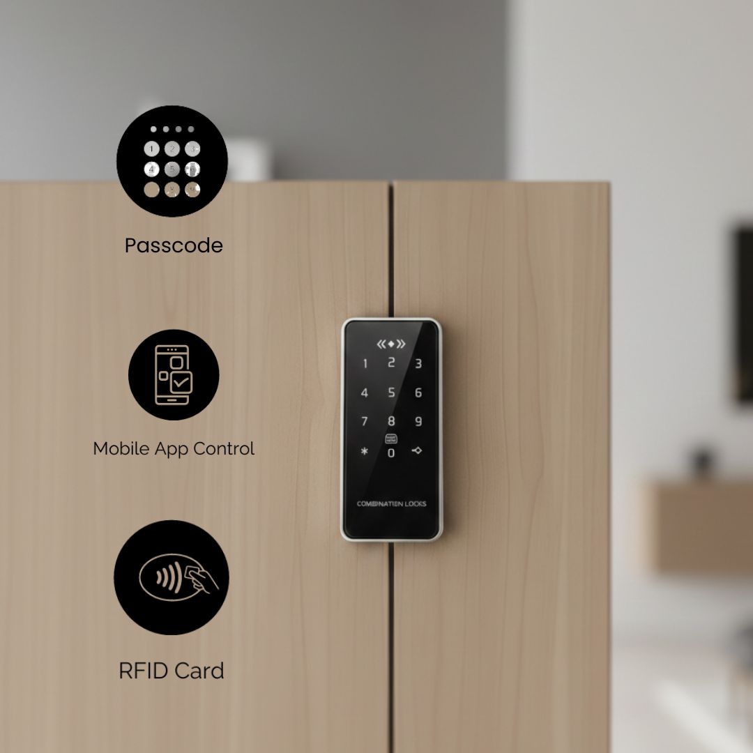 Unlock cabinets using a secure passcode, manage access conveniently through the mobile app, or use an RFID card for quick entry. Whether you’re protecting valuables, liquor storage, or medicines, this smart cabinet lock ensures controlled access with effortless operation.
