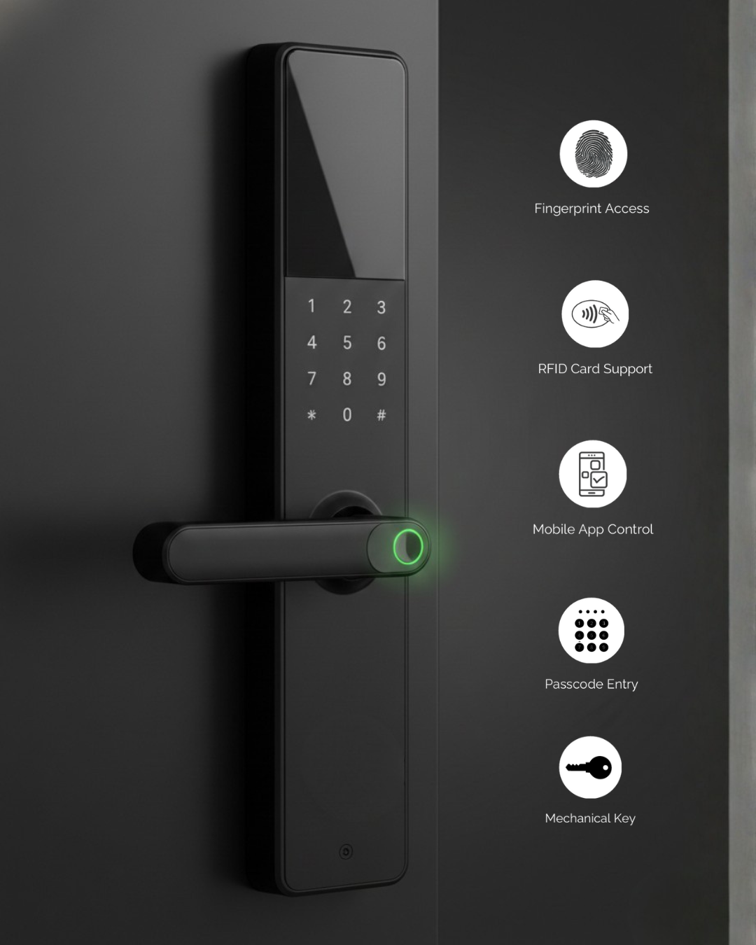 - RFID Card Support – Quick and contactless entry